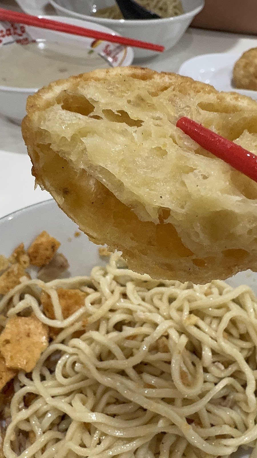 Bakmi Tan di Kelapa Gading punya ciri khas kerupuk ikan goreng sebagai topping — wangi, garing, dan jadi pembeda dari bakmi biasa.
