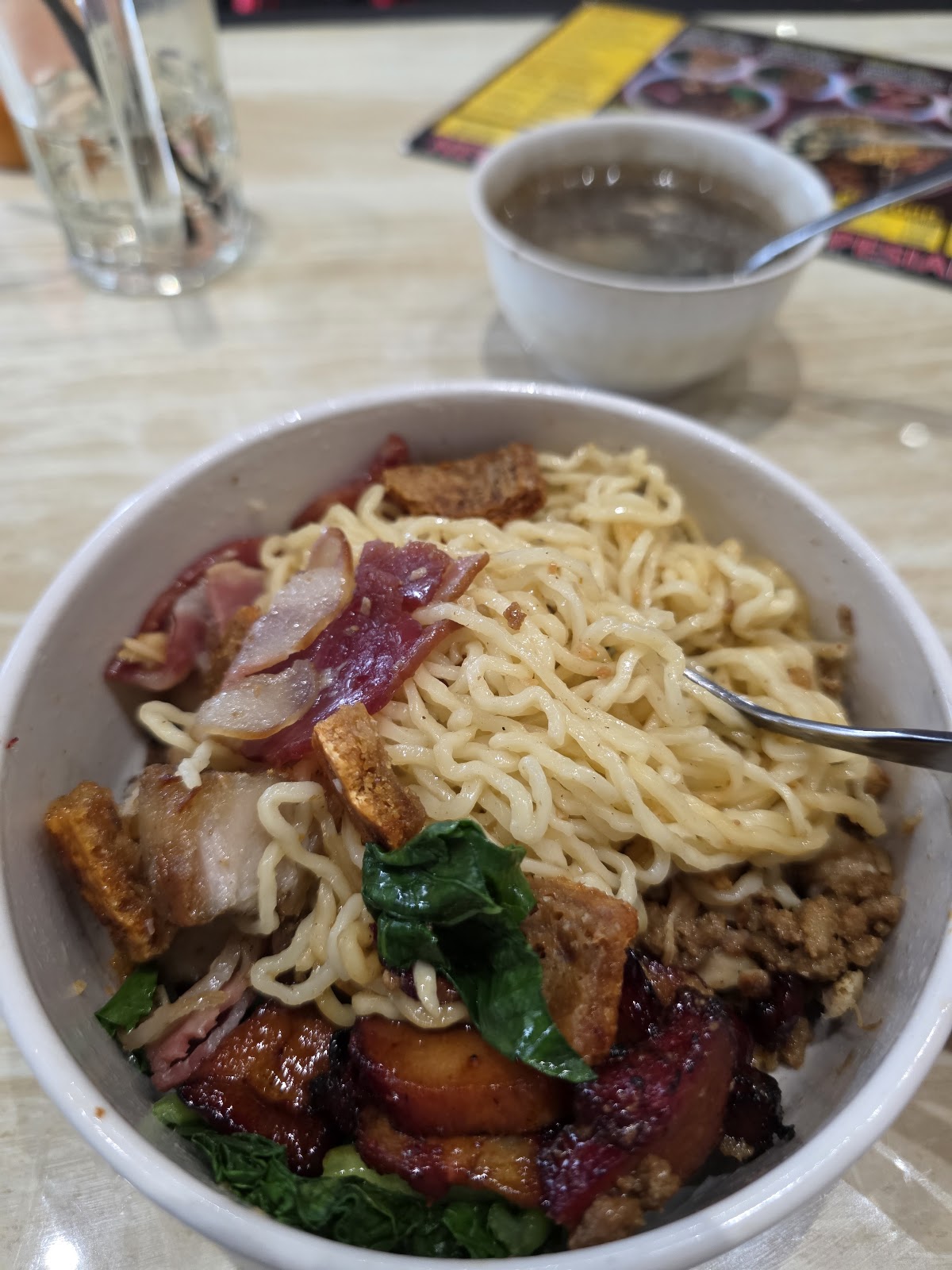 Ncek Legenda di Gading Serpong tawarkan porsi gubernur dengan topping babi mulai dari chasiu, bacon, panggang sampai ayam. Rasa konsisten enak tapi bumbu bisa keterlalu asin.